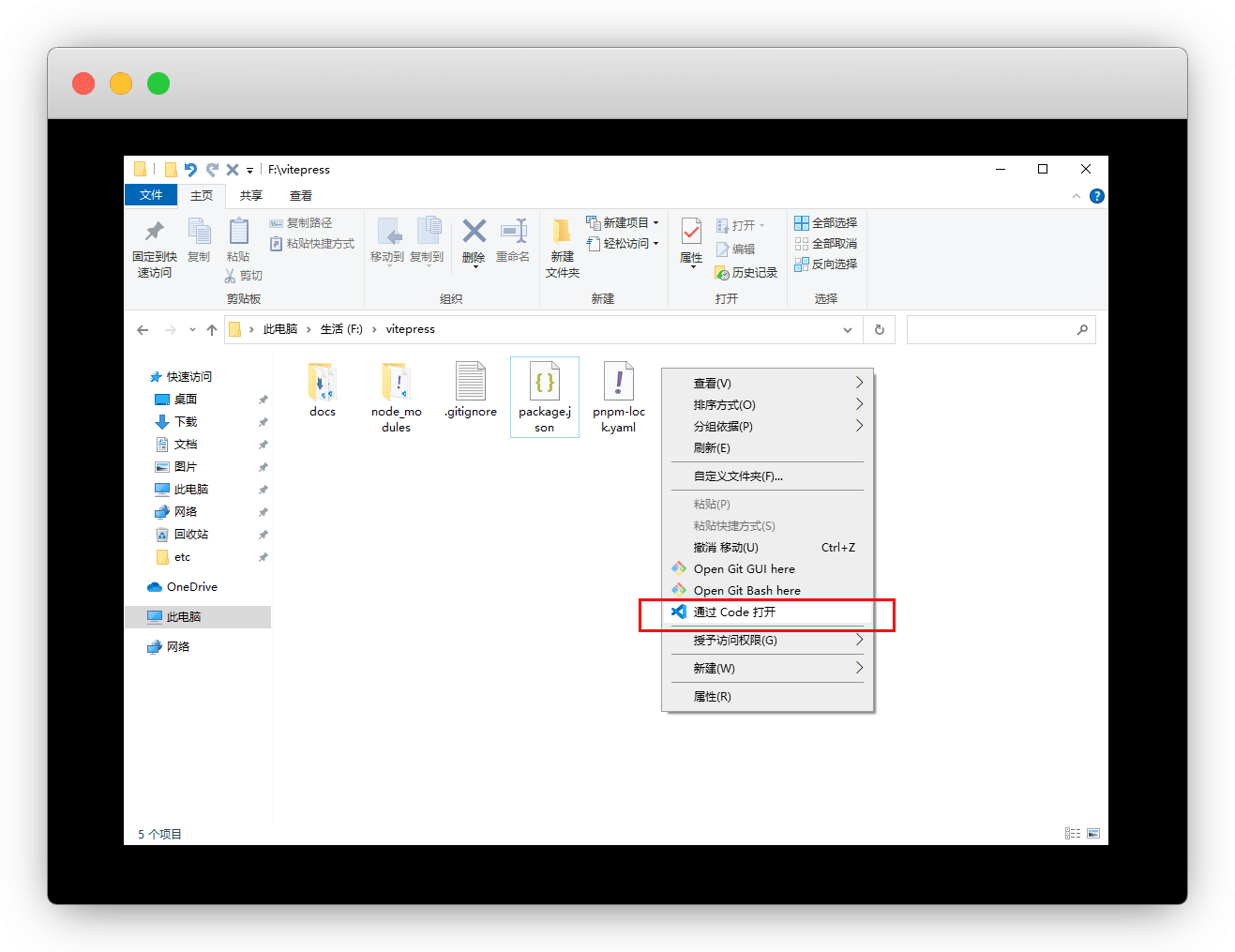 在当前目录,右键用 vscode 打开