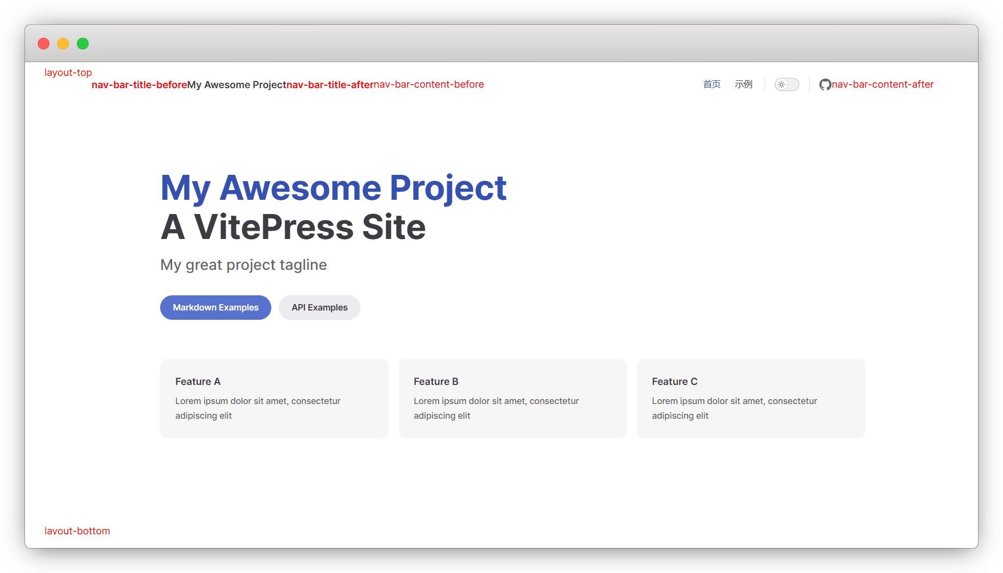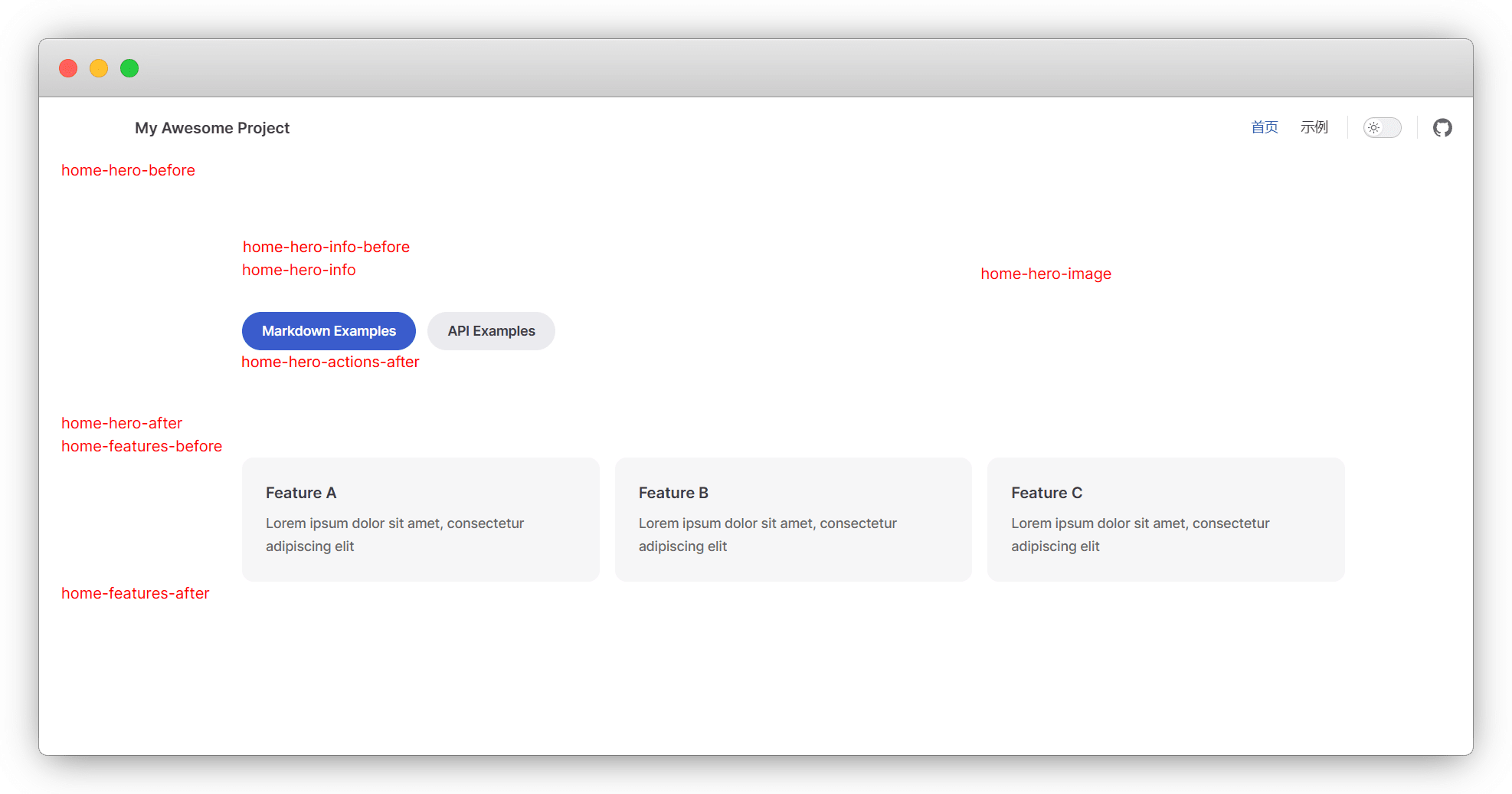 //'doc-before': () => h(MyLayout2), // 第2个组件使用doc-before插槽